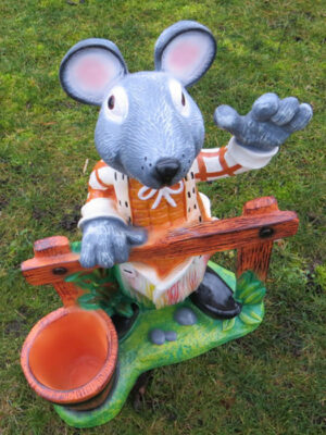 Fröhliche Maus mit Eimer als Blumentopf für Deko, 55 cm hoch