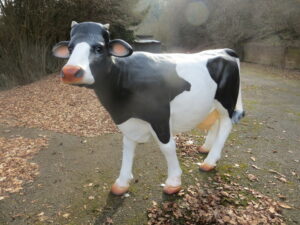 Kuhfigur lebensgross, 170 cm hoch, schwarz-weiss, ohne Hörner