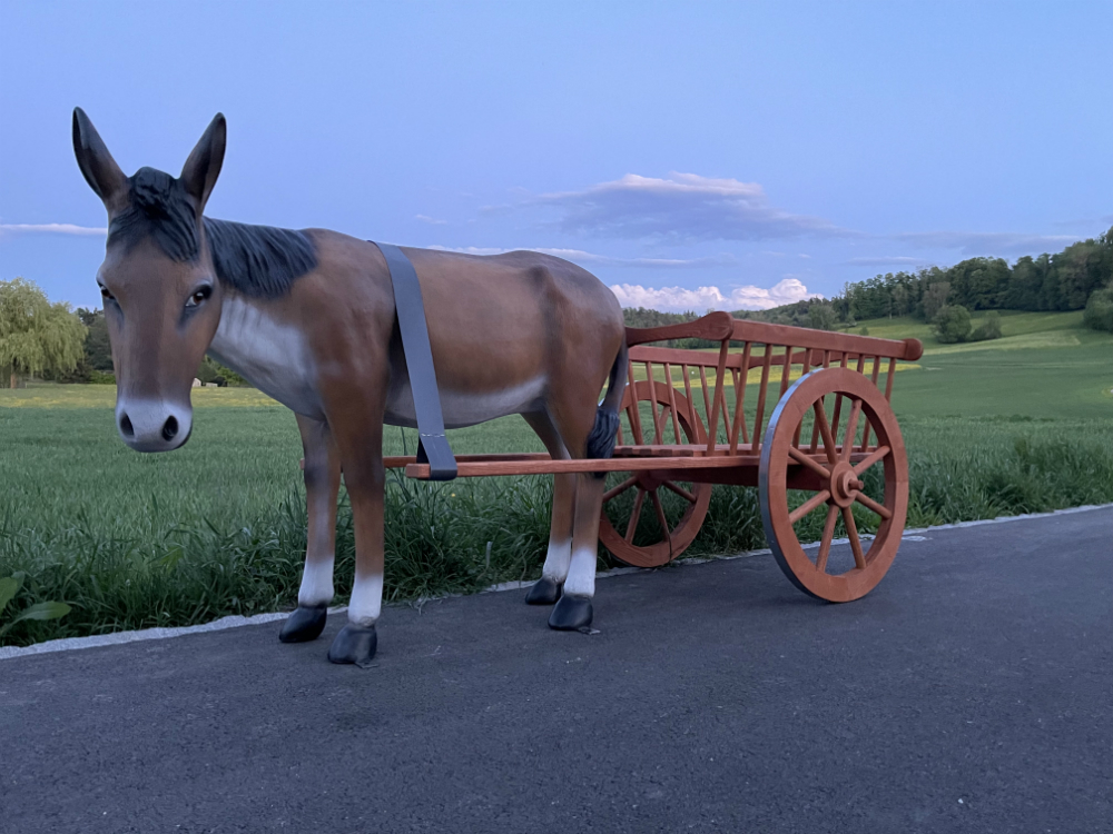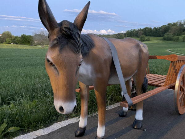 Als Aussendeko bei Restaurants oder bei Ladengeschäften als Kundenstopper wird dieses Eselgespann sicher Aufmerksamkeit erregen.