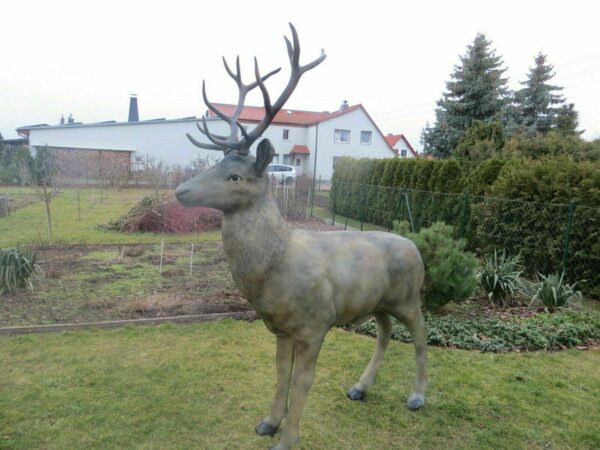 Lebensgrosser Dekohirsch als einzigartige, auffällige Gartendeko, die die Blicke auf sich zieht.