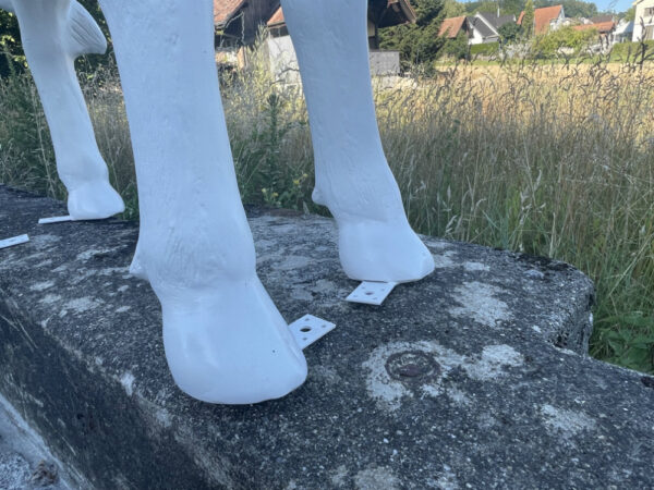 Lebensgrosses Dekokalb weiss grundiert zum selber bemalen, als Gartendeko oder auf der Terrasse, aber auch als Innendeko bei Events und Ausstellungen ist diese Skulptur ein aussergewöhnlicher Hingucker.