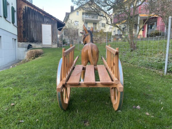 Als Aussendeko bei Restaurants oder oder bei Ladengeschäften als Kundenstopper wird dieses Eselgespann sicher Aufmerksamkeit erregen.
