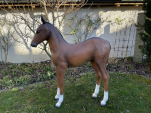 Zwei Halbformen wurden mit Glasfasermatten ausgekleidet und mit Kunstharz bestrichen. Nach dem Aushärten wurden die Halbschalen zusammengeklebt und einzeln in Handarbeit entgratet und geputzt.
