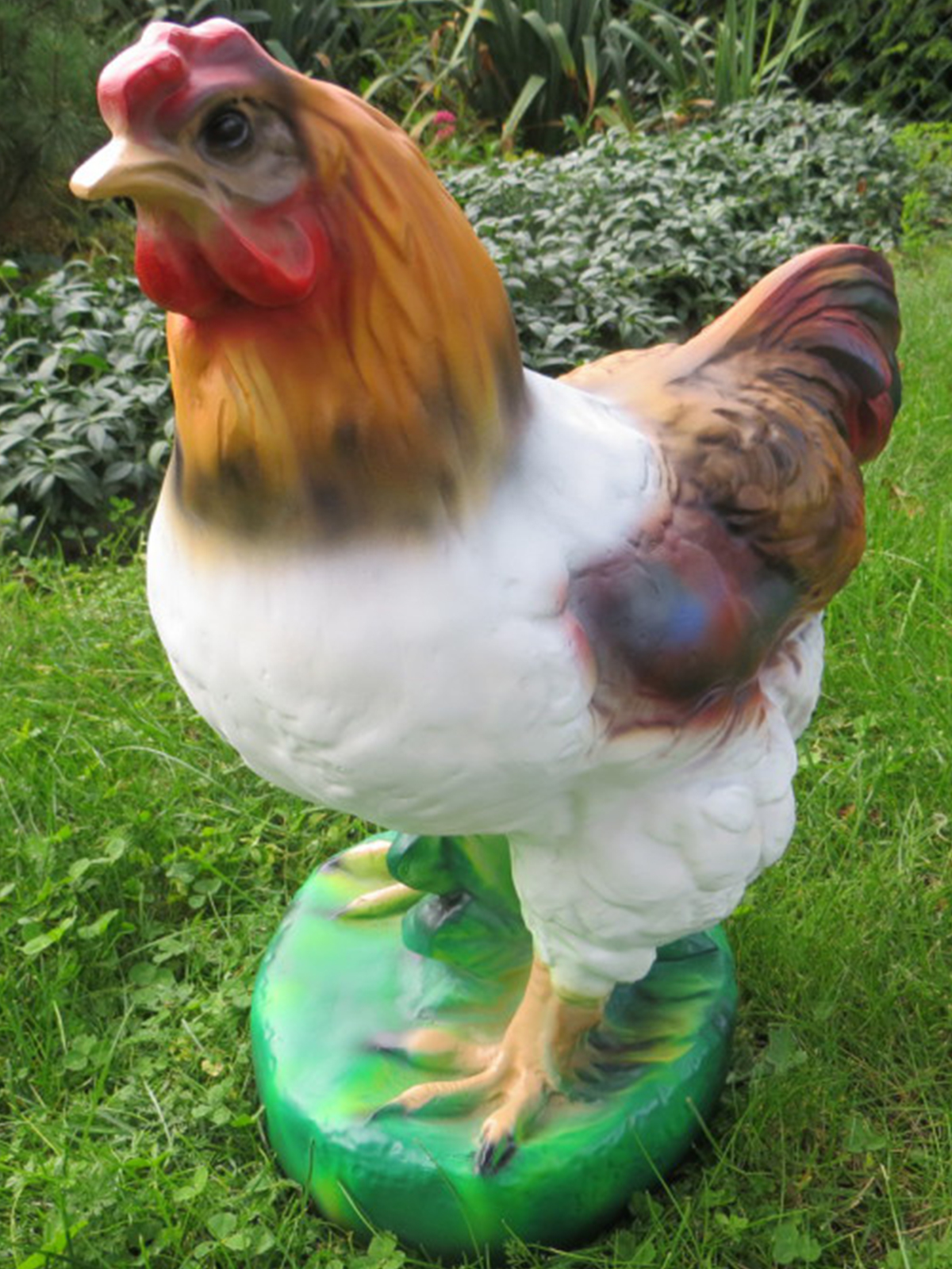Diese Henne ist eine originelle Gartendeko, die sicher für Aufmerksamkeit sorgen wird.