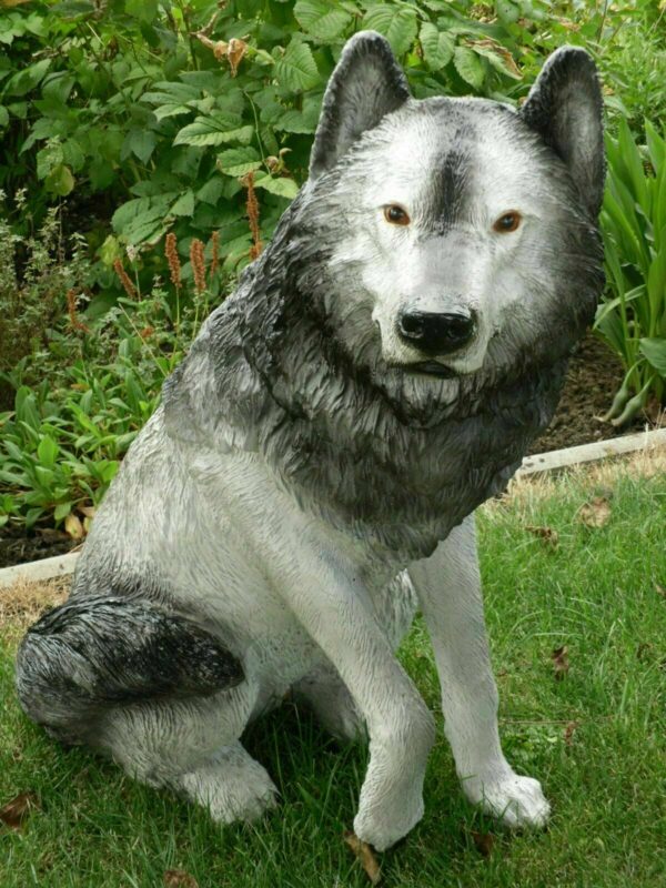 Gartendekofigur sitzender Wolf, 69 cm hoch