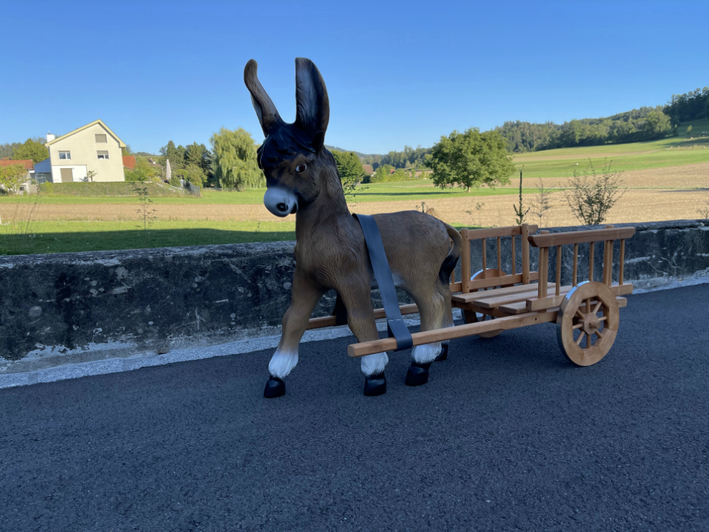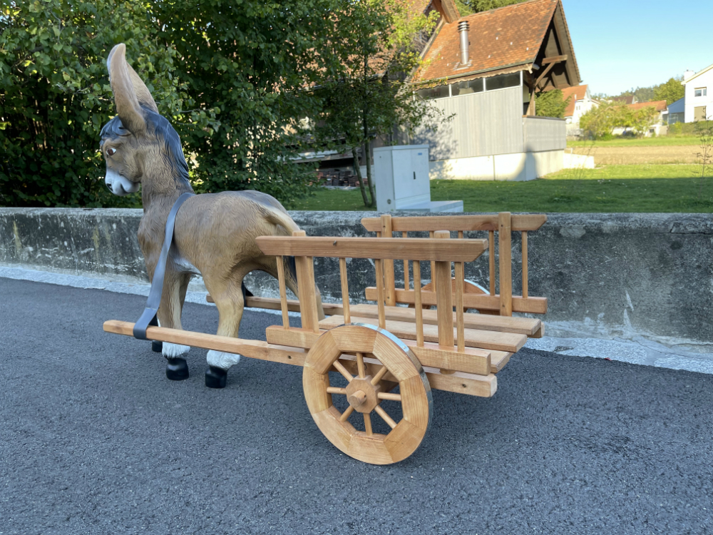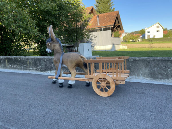 Als Aussendeko bei Restaurants oder oder bei Ladengeschäften als Kundenstopper wird dieses Eselgespann sicher Aufmerksamkeit erregen.