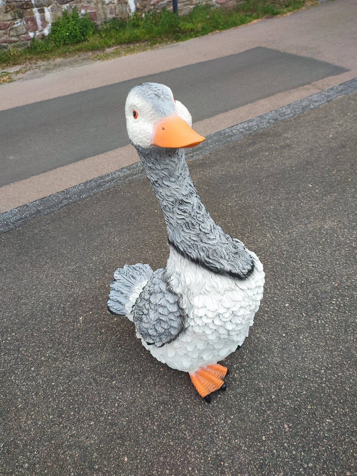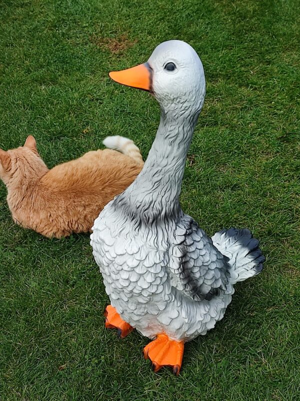 Eine grosse Deko Gans für den Garten ist kein alltäglicher Anblick.