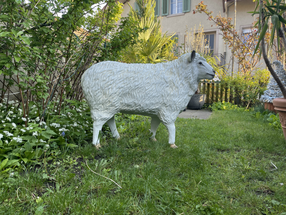 Die grosse Schaffigur ist eine schöne Deko in jedem Garten und auf der Terrasse.