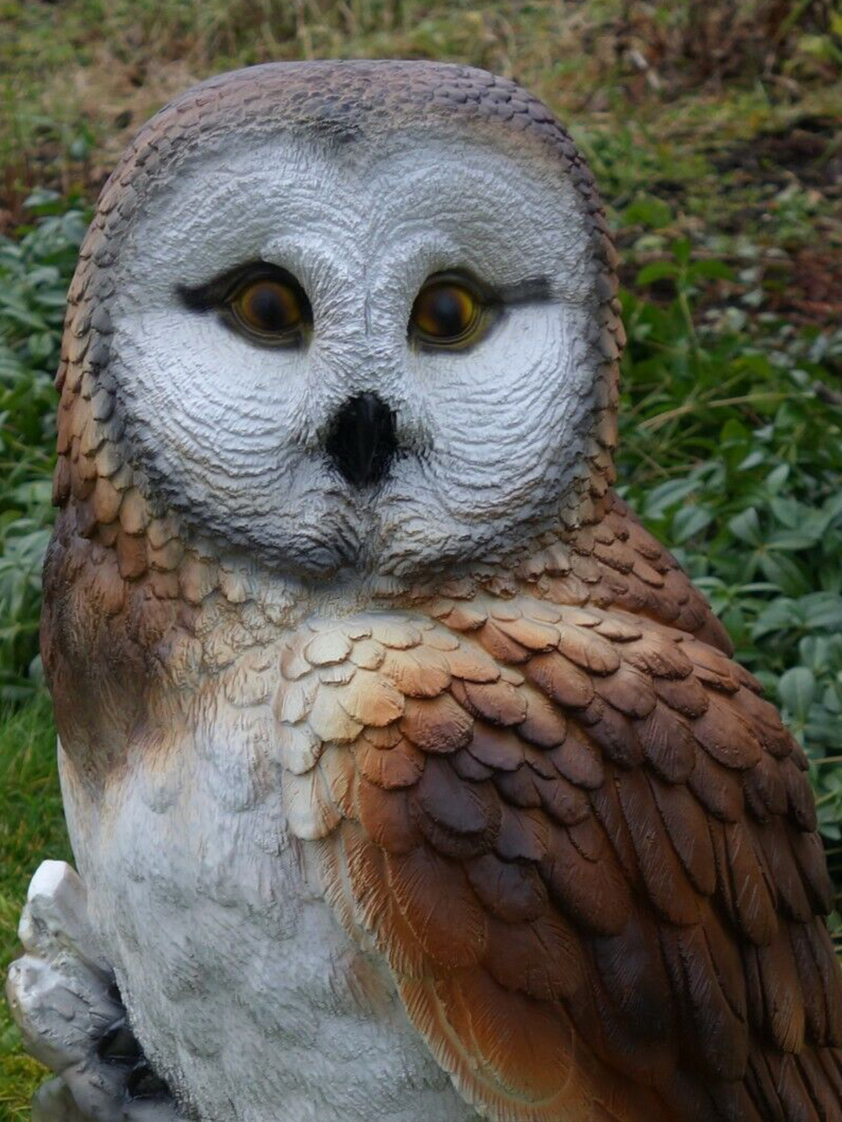 Die grosse Schleiereule ist eine einzigartige Gartendeko Figur mit einer ihr ganz eigenen Eleganz.