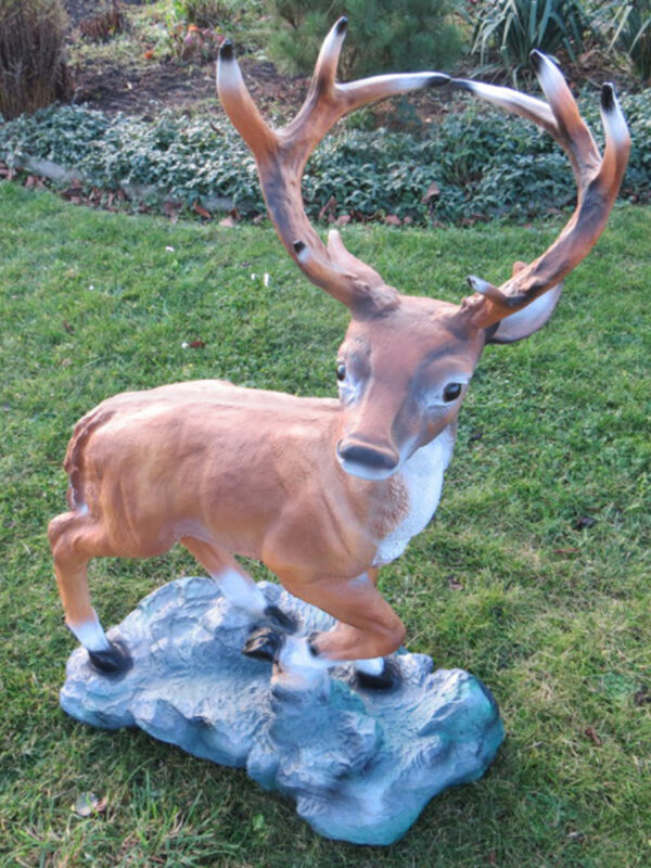 Hirschfigur auf Steinplatte, 110 cm hoch