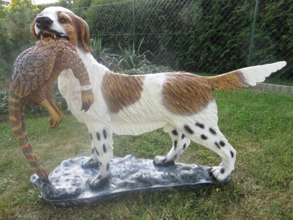 Jagdhund mit Beute als Gartendeko für den Jäger, 125cm lang