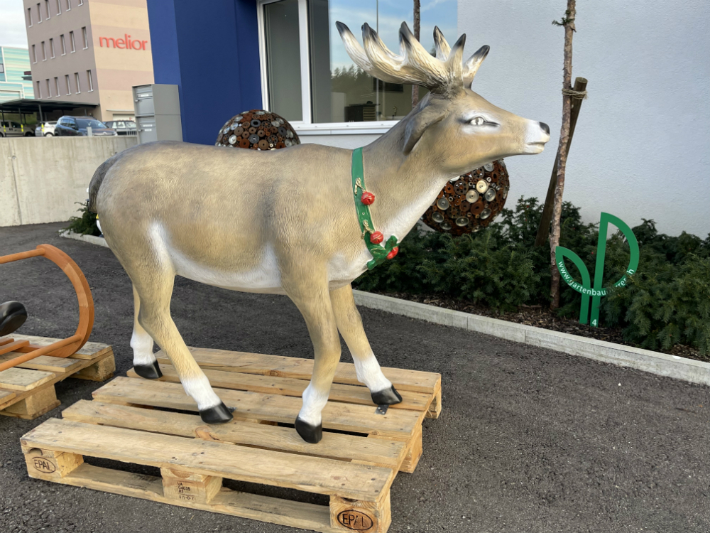 Als Hingucker bei Weihnachtsanlässen oder als Kundenstopper vor Restaurants und Läden wird dieses Tier sicher die Aufmerksamkeit auf sich ziehen.