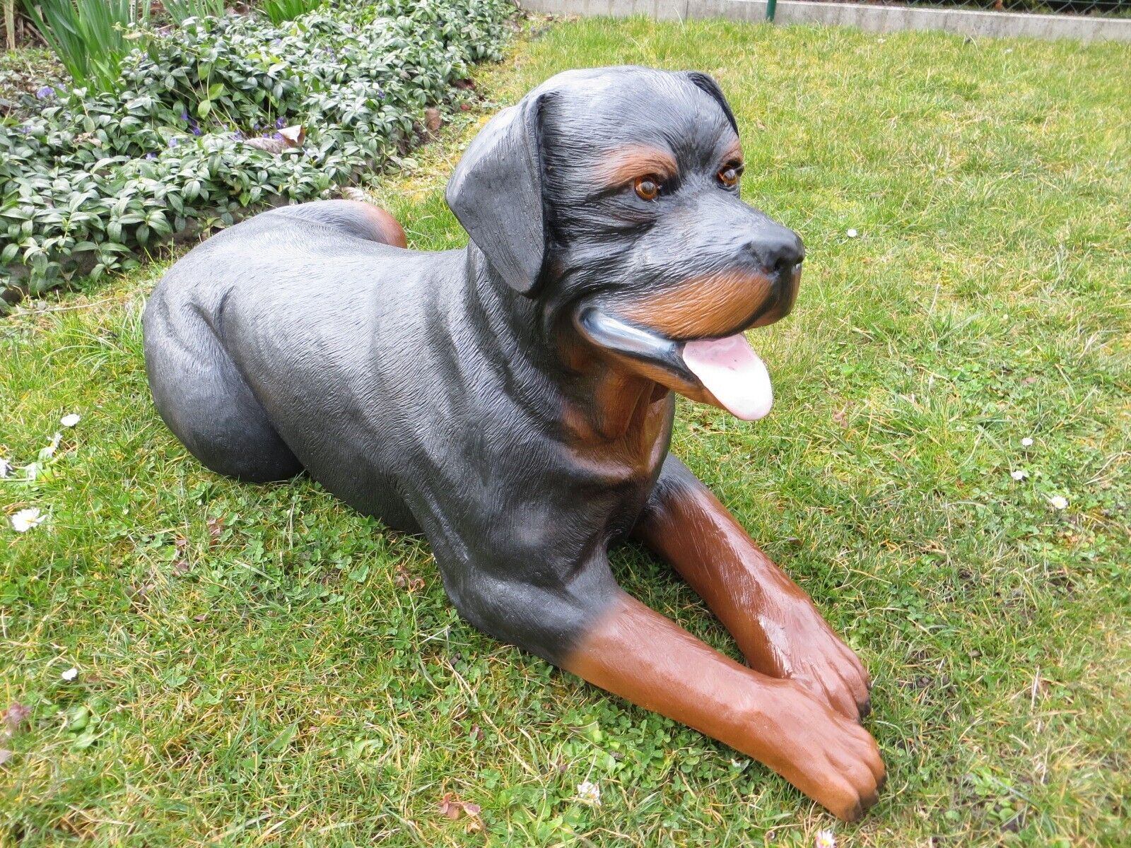 Liegende Deko Rottweilerfigur für Garten und Wohnung, 90 cm lang