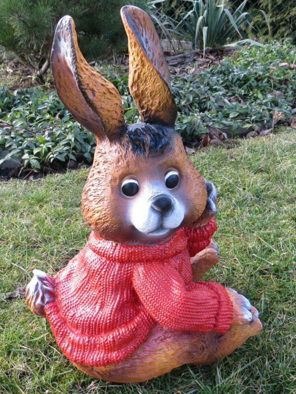 Die Hasenfigur ist auch an kälteren Tagen gut gerüstet, der Pullover hält schön warm.